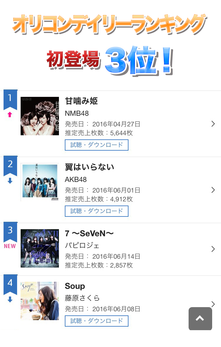 1st single 【7〜SeVeN〜】オリコンデイリーランキング初登場3位